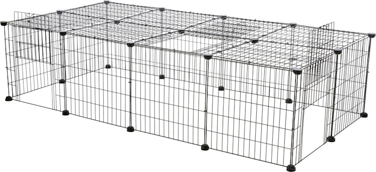 Freilaufgehege mit Abdeckung, Metall, 152 × 38 × 72 cm, schwarz