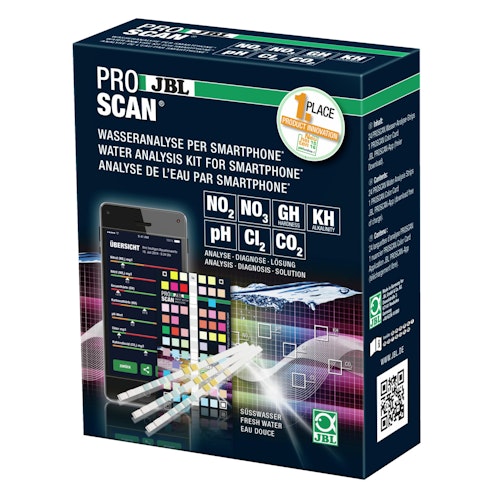 Hinweis: Der Teststreifen ist jeweils nur für eine Messung geeignet. Ein wiederholtes Scannen des Streifens führt zu unterschiedlichen Werten, da der Streifen stetig weiter reagiert. Bei der Durchführung der Analyse "Aquarium Süßwasser" und "Wasser" wird als Bonus der aktuelle CO2-Gehalt im Wasser berechnet. Abgestimmt auf das Analyseergebnis in den Bereichen "Aquarium Süßwasser" und "Gartenteich" werden gezielt Lösungsempfehlungen und Hinweise übermittelt, welche JBL-Produkte zur Unterstützung der idealen/optimalen Wasserwerte führen.