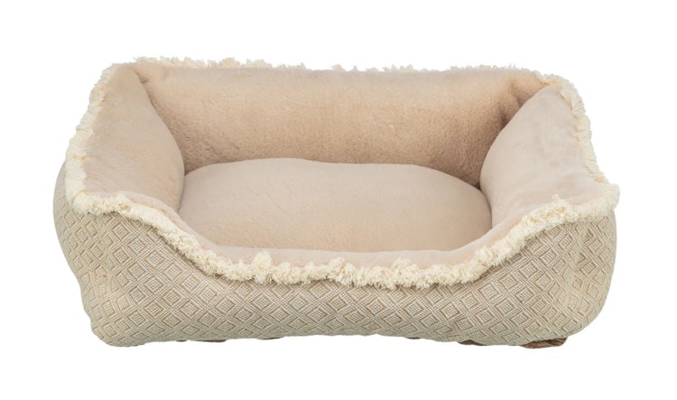TRIXIE bietet ein eckiges Boho-Bett für Hunde und Katzen, mit abnehmbaren Bezug, rutschfestem Boden und fest integriertem Kissen in Beige.