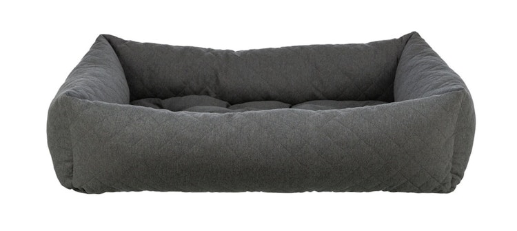 TRIXIE bietet mit dem eckigen Bett Caliente in Dunkelgrau eine waschbare Katzenliege mit herausnehmbarem Kissen und Antirutschschicht für Allergiker.