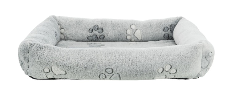 Das TRIXIE Hundebett in der BASIC Edition überzeugt mit rutschfestem Boden, Softplüschmaterial und integriertem Kissen in hellgrau (75x65 cm).