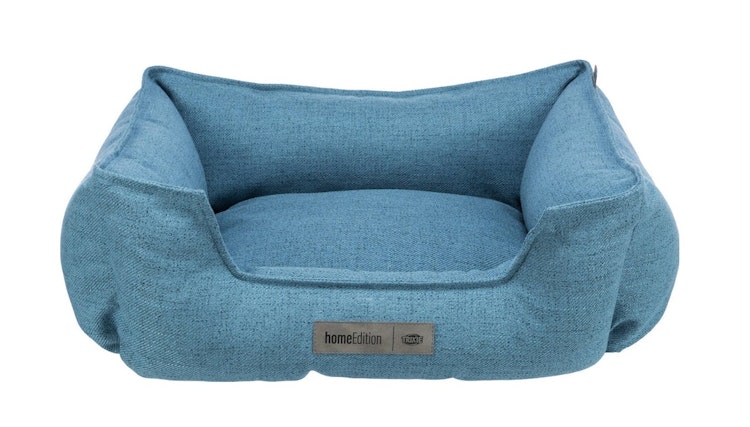 TRIXIE Eckiges Hundebett Talis 60×50 cm, blauer Polyester-Bezug mit Polyestervlies-Füllung, abnehmbarer Bezug (40 °C), festes Kissen, rutschfester Boden.
