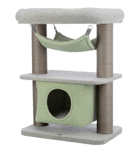 Der TRIXIE Junior Kratzbaum Lunito bietet auf 2 Ebenen mit Höhle, Hängematte und kuscheligem Plüsch optimalen Kletter- und Ruheplatz für Katzen.