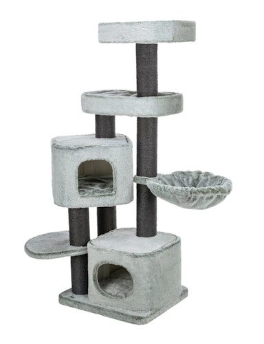 Der Kratzbaum von TRIXIE bietet Ihrer Katze einen perfekten Ort zum Spielen und Entspannen. Mit einer stabilen Hängematte, Höhlen und Betten mit Wendekissen sorgt er für viel Abwechslung und Komfort. Der Kletterbaum ist aus hochwertigen Materialien gefertigt, darunter Sisal und weicher Langhaar-Plüsch, der sowohl strapazierfähig als auch gemütlich ist. Die dicke, schwere Bodenplatte garantiert dabei zusätzliche Stabilität. Mit einem modernen Design in grün-weiß fügt sich der Kratzbaum harmonisch in Ihr Zuhause ein, während er gleichzeitig den natürlichen Kratzbedürfnissen Ihrer Katze gerecht wird. **Wichtigste Produktfakten:** - Marke: TRIXIE - Produkttyp: Kratzbaum - Material: Sisal, Langhaar-Plüsch (Polyester), Plüsch - Maße: Grundfläche 55 × 48 cm, Höhe 146 cm, Stamm ø 11 cm - Eigenschaften: Hängematte mit stabilem Metallrahmen, Höhlen und Betten mit Wendekissen - Besondere Merkmale: Dicke schwere Bodenplatte Fazit: Ein idealer Rückzugsort für Ihre Katze, der Spiel und Entspannung optimal verbindet.