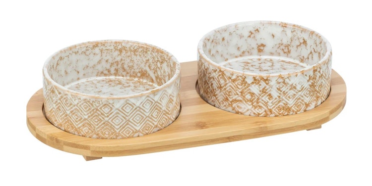TRIXIE Napf-Set, Keramik/Bambus, 2 × 0,8 l/ø 16 cm/39 × 8 × 20 cm, weiß/hellbraun