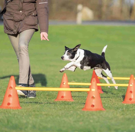Bringen Sie Schwung und Abenteuer in das Hundetraining mit dem TRIXIE Pylonen-Hindernis-Set! Dieses vielseitige Trainingsset wurde speziell entwickelt, um die Beweglichkeit und Geschicklichkeit Ihres Vierbeiners spielerisch zu fördern. Ob Agility-Einsteiger oder erfahrener Sportler – mit den farbenfrohen, robusten Pylonen gestalten Sie abwechslungsreiche Parcours, die nicht nur den Körper, sondern auch den Geist Ihres Hundes fordern. Die hochwertigen Materialien sorgen für Langlebigkeit und Stabilität, damit Sie lange Freude an Ihrem Trainingsset haben. Entdecken Sie gemeinsam mit Ihrem Hund neue Herausforderungen und stärken Sie dabei spielerisch Ihre Bindung. Mit dem TRIXIE Pylonen-Hindernis-Set wird jedes Training zum motivierenden Erlebnis! - Produkttyp: Trainingsset mit Pylonen für Hundesport und Agility - Set-Inhalt: 6 bunte Pylonen - Material: langlebiger, wetterfester Kunststoff - Einsatzbereich: Indoor und Outdoor geeignet - Größe: ca. 18 cm Höhe je Pylone - Vorteile: fördert Beweglichkeit, Koordination und Bindung zwischen Hund und Halter Das TRIXIE Pylonen-Hindernis-Set macht das Hundetraining abwechslungsreich und effektiv – so unterstützen Sie spielerisch die Fitness und den Spaß Ihres Hundes.