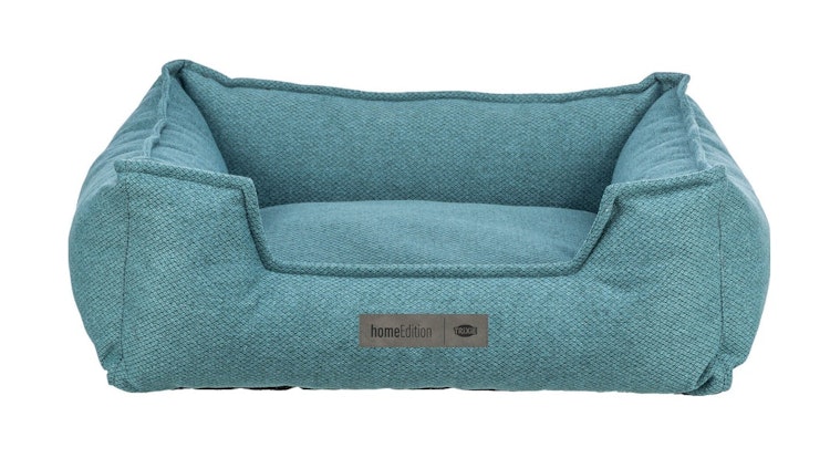 TRIXIE Vital Bett Liano 60×50 cm, eckiges Hundebett in Petrol mit abnehmbarem Polyester-/Softplüsch-Bezug, Schaumstoffflockenfüllung, festem Kissen und rutschfestem Boden.