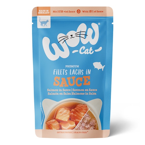 WOW Cat Saucen-Menü mit Filetstückchen - Katzenassfutter Lachs in Sauce Cat